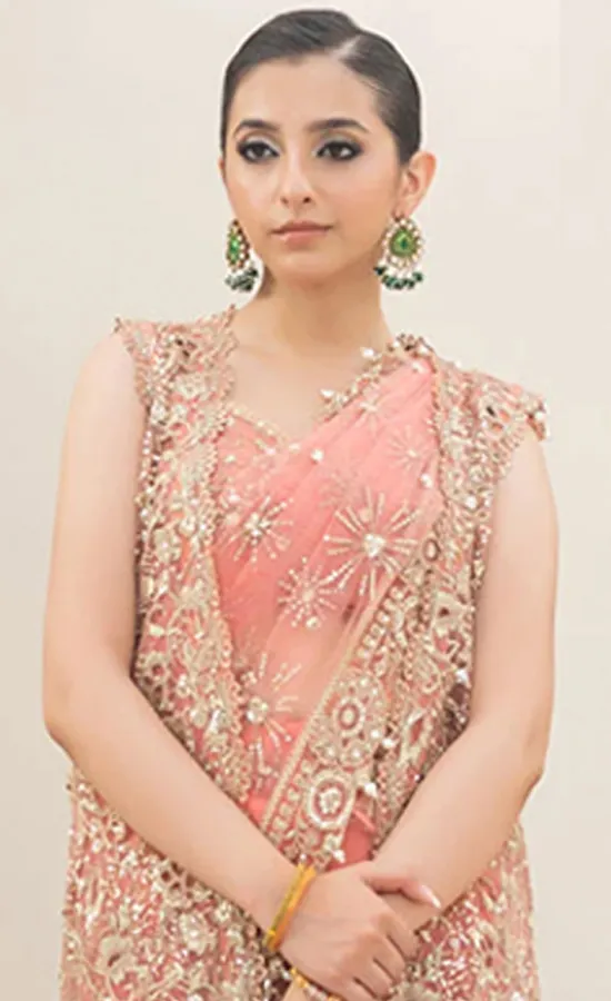 The Peach Color Saree is so elegant! The embroidery is stunning. Highly recommend PK Bridals!