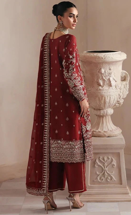Buy Asim Jofa Maroon Punjabi Suit For Wedding Guests Now!